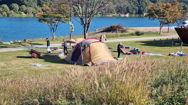 Today's walk was also ridiculously short at 16K, so I deliberately started late and took my sweet time. It was a good day for dithering, I must say—bright and clear and windy. I tried napping at one point, but I couldn't shut out the sun or the wind. I did linger, though, whenever I found a reason to. One big thing going on today was some sort of ROK Army operation along the river. I snapped some pics of the op and immediately felt guilty for doing so (spy!), but no one in uniform yelled at me, so that was a plus.