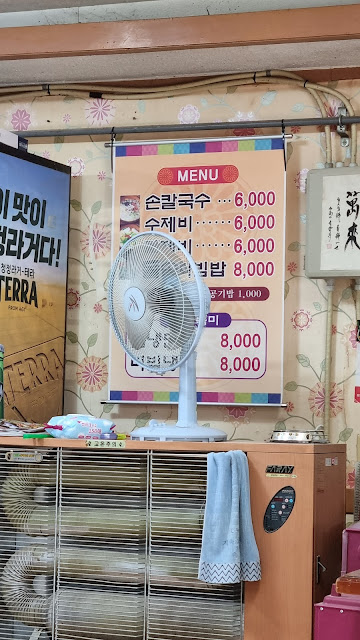 I've got the fan and A/C going. I'll turn the A/C off tonight since it's supposed to get cold. Aside from that, I plan to launder my underwear and socks, take a shower, re-dress my injured toe, and spend the rest of the evening watching YouTube. I can afford to wake up at 5 tomorrow morning since my walk is only 19K to eastern Miryang, which means I can stay up until 11 tonight if I want. This is something I take for granted in my normal life: I'm usually a night owl who stays up until almost sunrise before finally bedding down and getting up just before lunch. But on these walks, I'm a different person, so bedding down at 11, not 10, is special.